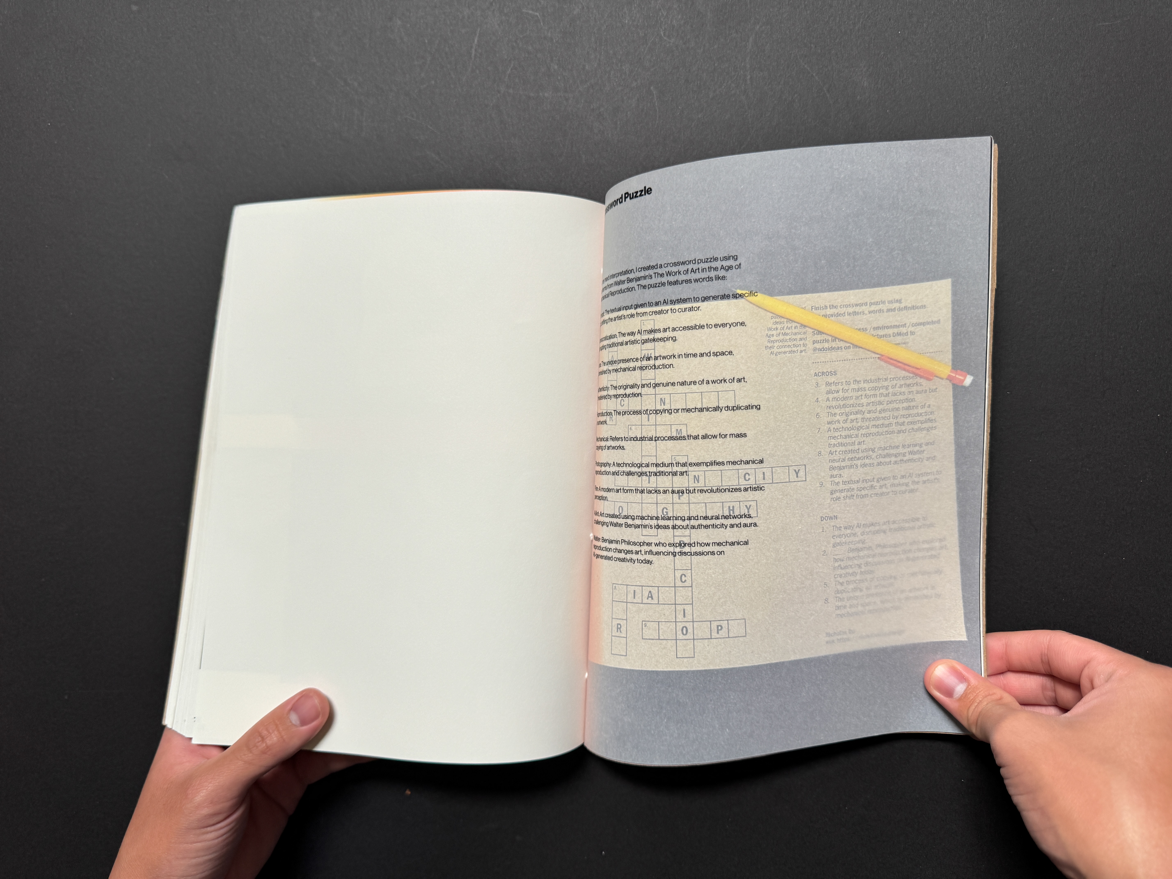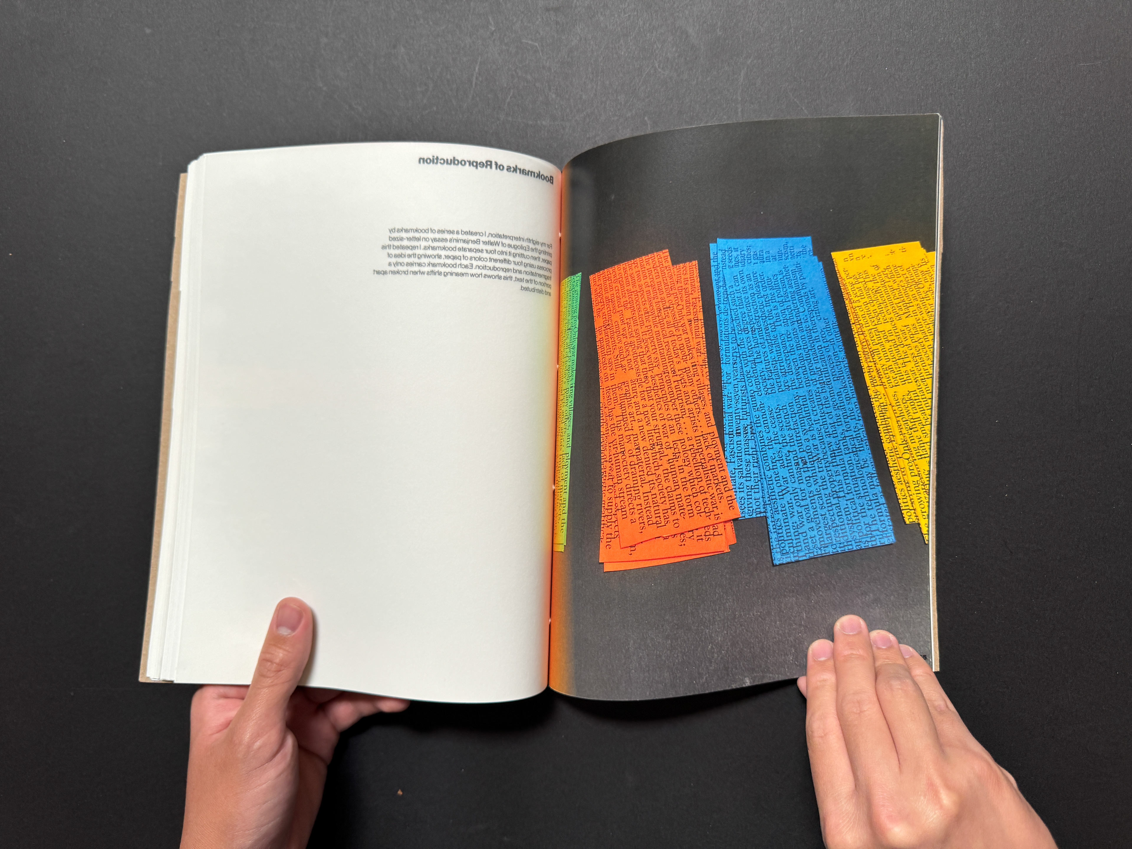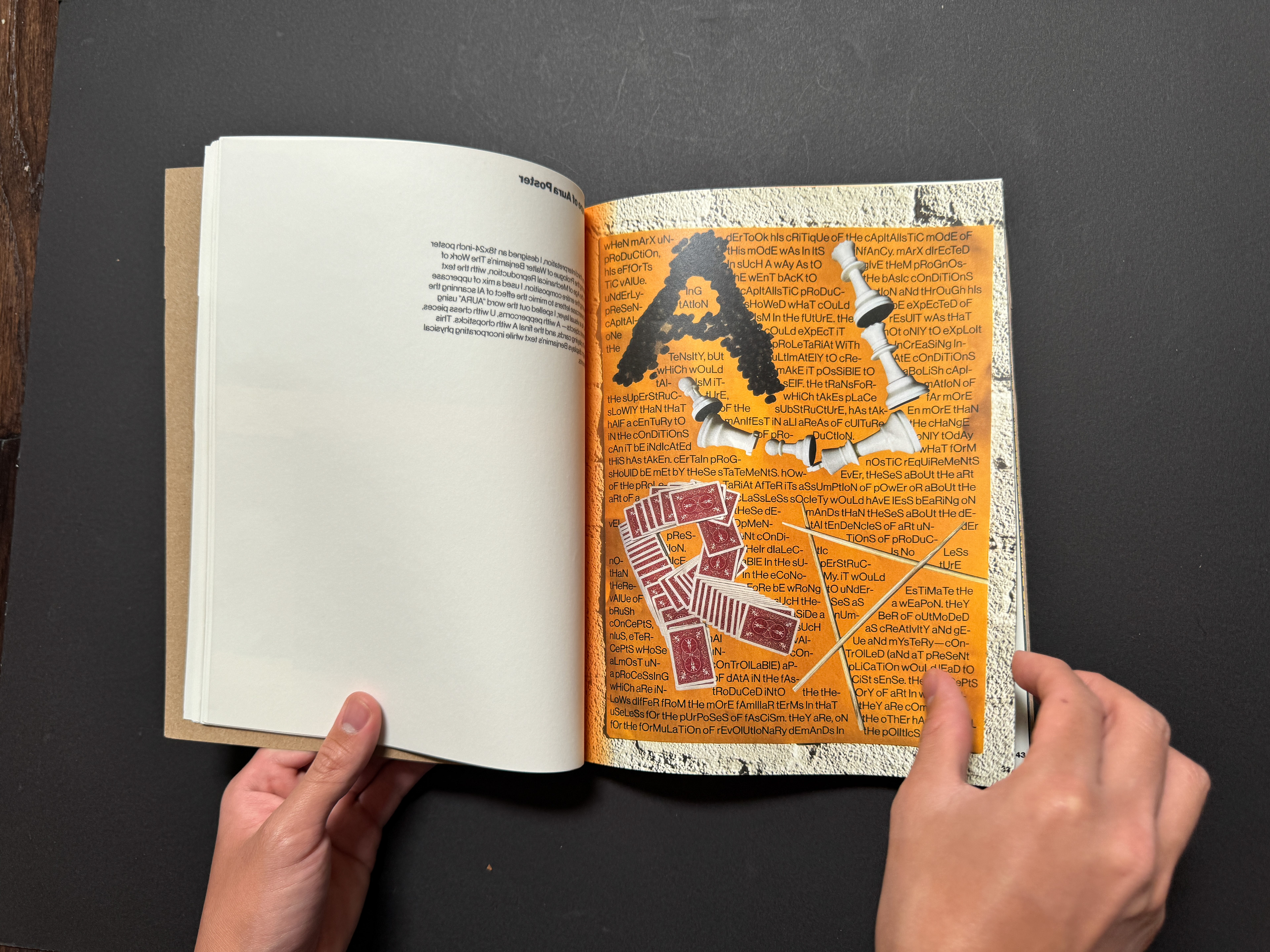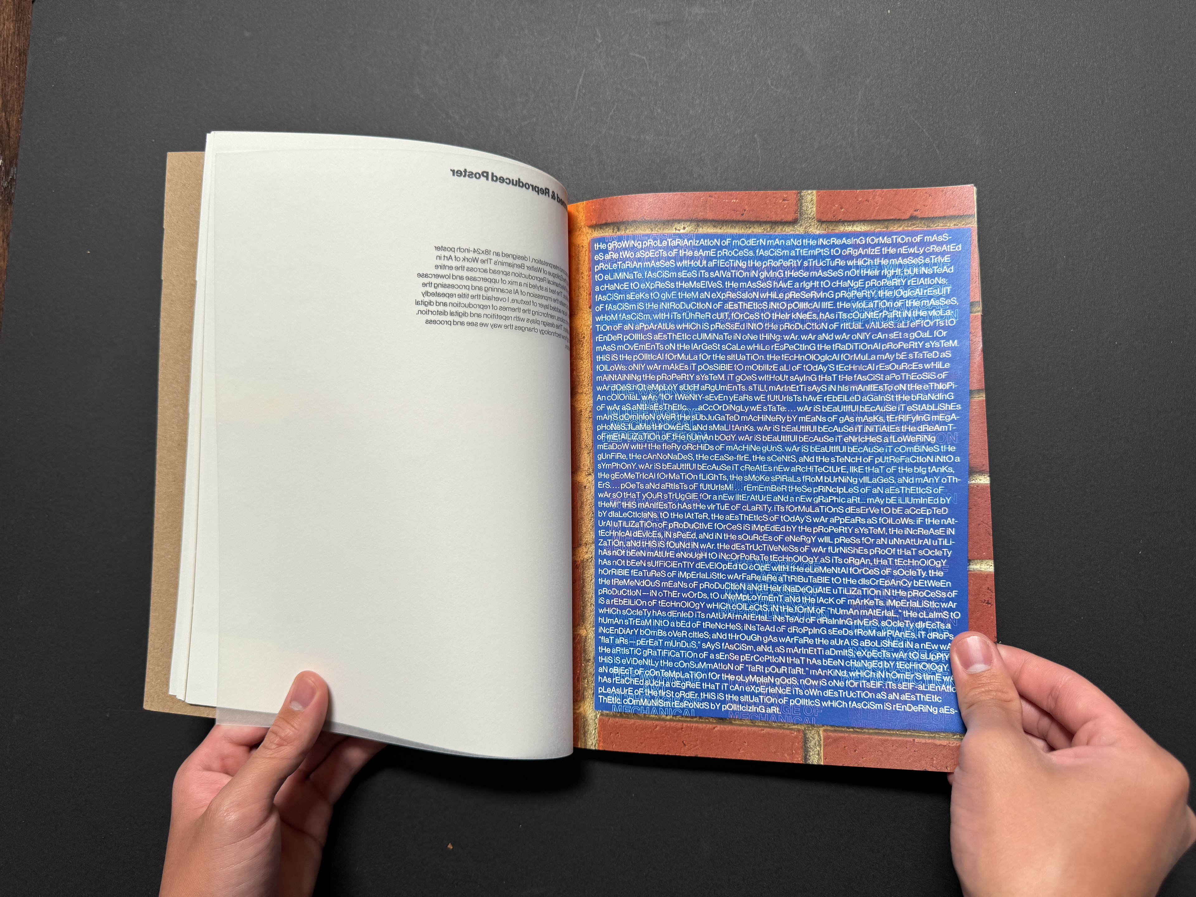 For this project, I critically analyzed Walter Benjamin’s essay The Work of Art in the Age of Mechanical Reproduction, exploring the effects of mechanical reproduction on the ‘aura’ of art. My work involved creating a scholarly response, which was accompanied by 10 typographic interpretations of Benjamin’s concepts. These interpretations spanned various mediums, including posters, apparel, and sculpture, each physically existing in the world and documented through photography. The project culminated in a physical Reflection Book, which captured the entire process, from research and creative interpretation to the installation of the work in its environment.