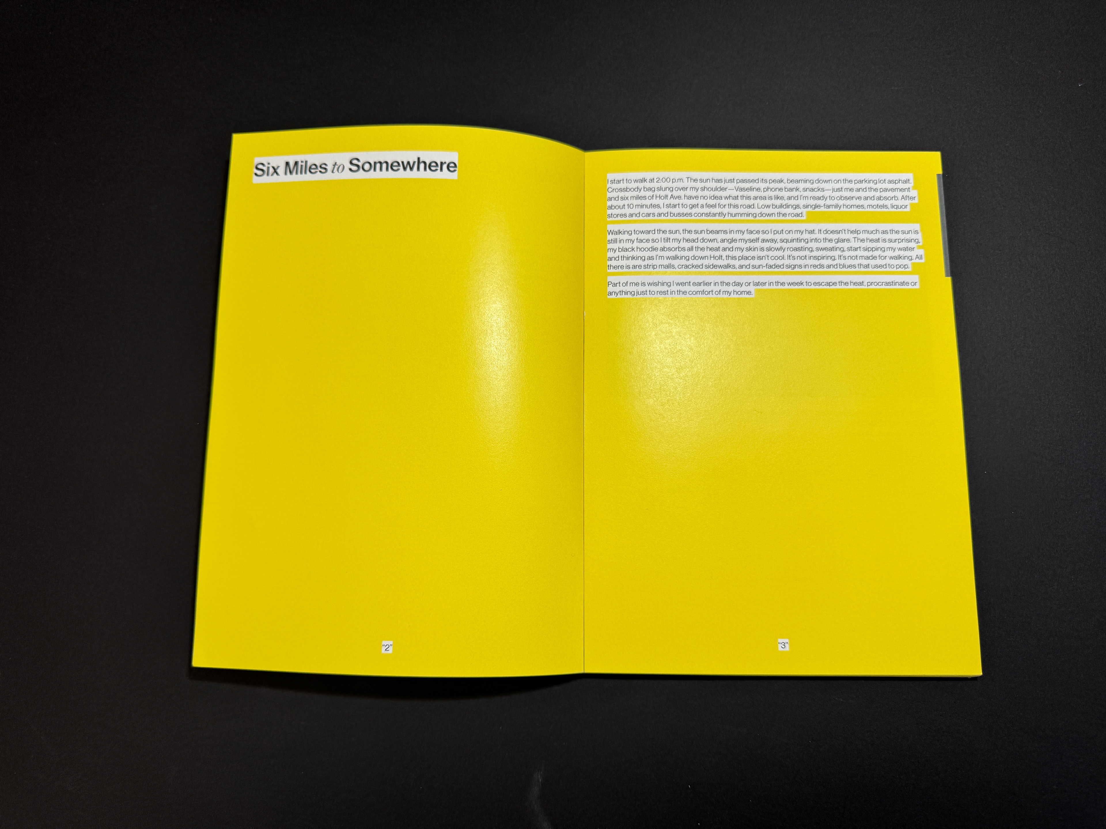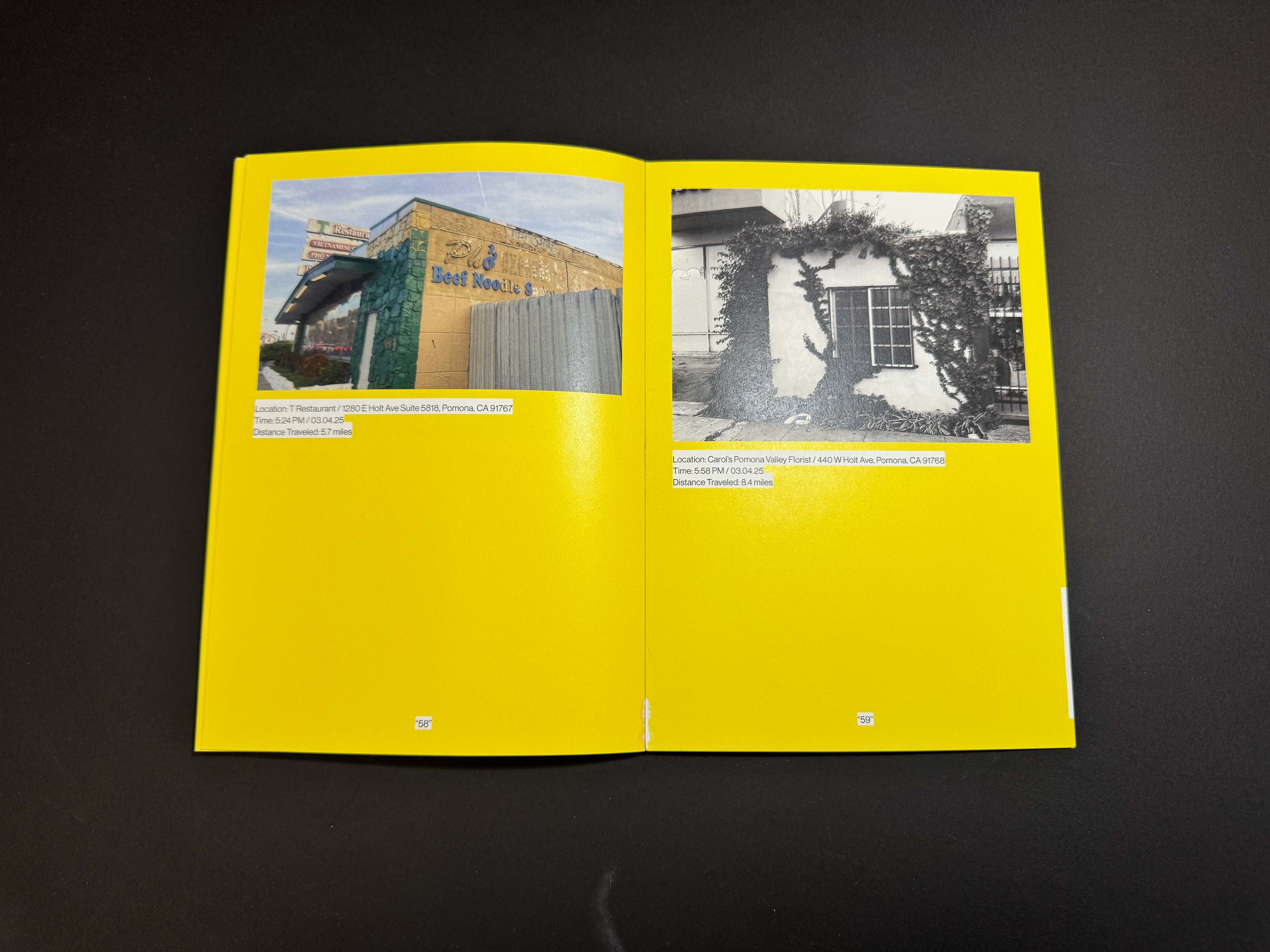 I created a book inspired by Jack Kerouac’s October in the Railroad Earth, capturing the essence of Pomona’s Holt Avenue through photography, storytelling, and design. The project involved walking a 6-mile route, documenting the community, and immersing myself in the aura of the area. I captured over 1,000 photos, interacted with locals, and collected physical ephemera, which I then incorporated into a short story/long poem reflecting my experience.
